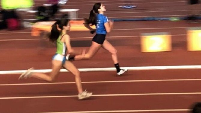 Marta Carrión Alonso, debutaba con la marea azul del Benavente atletismo participando en el control de marcas Fam disputando la prueba de 400 ml. P.C. en la pista cubierta de Gallur. (Madrid)
