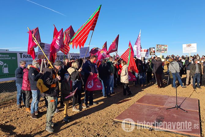 En los terrenos de la biorrefinería se congregaron esta tarde alrededor de 150 personas, entre las que se encontraban representantes de prácticamente todas las formaciones políticas que concurren a las próximas elecciones en nuestra provincia a excepción del Partido Popular y Ciudadanos, así como representantes de sindicatos de clase y agrarios.