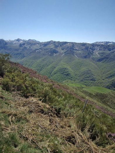 Partiendo de Torrestío (León) hacía el puerto de La Mesa, límite entre Asturias y León, atravesando las brañas de Saliencia, siguiendo por prados de altura, donde pasta el ganado durante la primavera y el verano hacía el alto de la Magdalena, siempre con el profundo valle de Saliencia a nuestra izquierda, con sus hayedos y espectaculares vistas de las montañas de Somiedo, y dejando el concejo de Teverga a nuestra derecha. Continuando por el cordal de La Mesa pasamos por la braña de la Corra dirección a puerto de Piedraxueves, y de ahí al alto de San Lorenzo, donde se dio por finalizada la marcha.