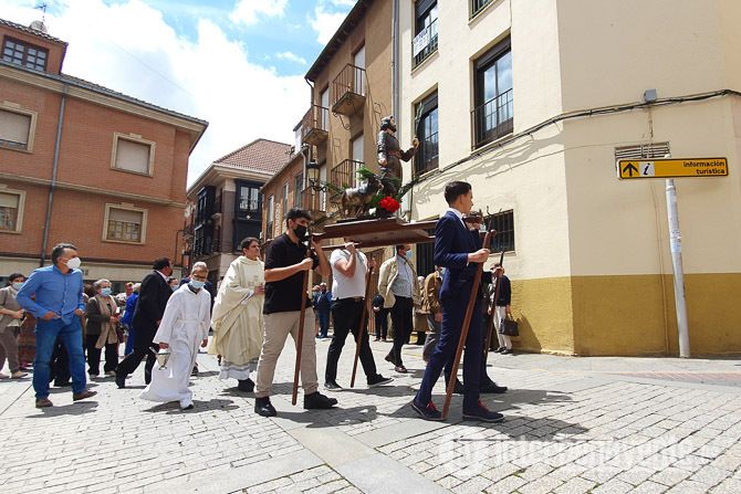La imagen que sacan en procesión es del siglo XVIII, muestra al santo vestido a la manera de los agricultores de su época, sobre andas que llevan agricultores, A su lado una yunta de animales de tamaño mucho más reducido en relación con el santo.