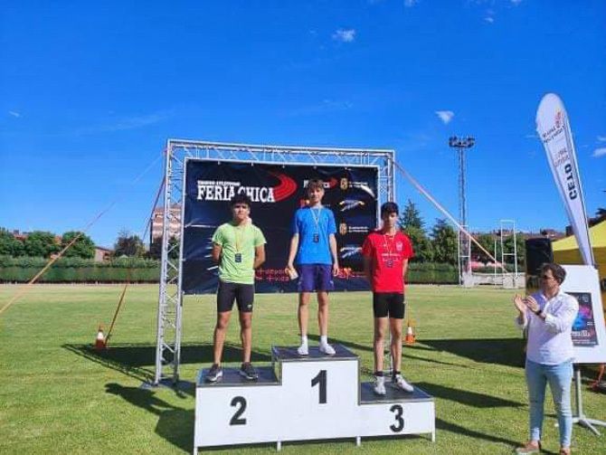 La marea azul del Benavente atletismo sube a pódium en la prueba de 100 ml. categoría Sub 16 masculina de la mano de Javier González Rodriguez. Javier cruzo la línea de meta en primera posición con un crono de 12.04