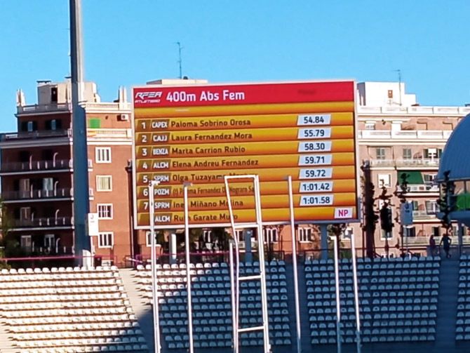 Marta Carrión Rubio se cuela en la final de 400 ml. Absoluto logrando el 1º puesto de su serie con una mejor marca personal de 59.01, bajando 3 segundos a su mejor marca en la distancia