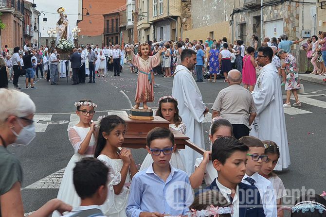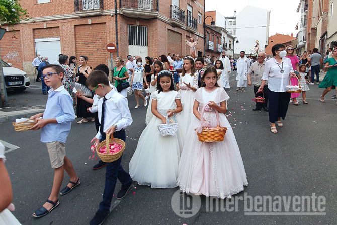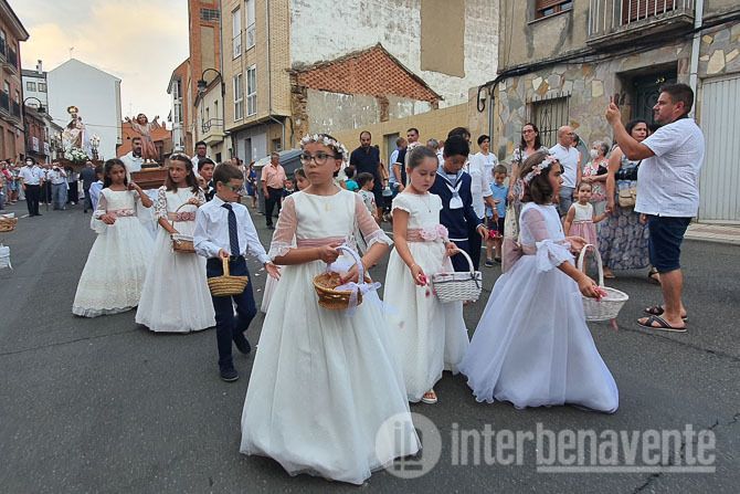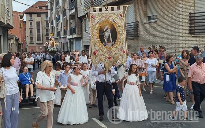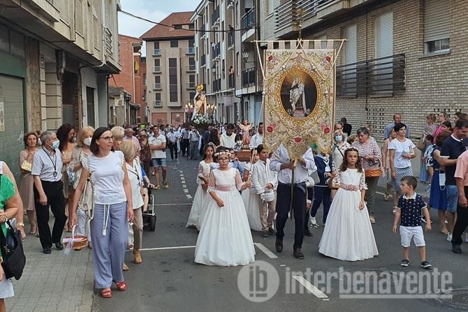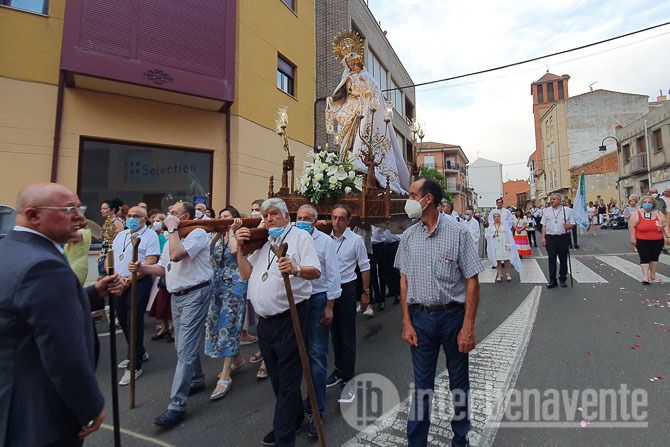 Escasa participación en este regreso a la celebración del Carmen en Benavente, motivada posiblemente por las altas temperaturas y por coincidir su celebración en sábado. Apenas una docena de niños de comunión, que no pudieron sacar todos los pasos infantiles que habitualmente procesionan en este día y también se echaron en falta muchos de los cofrades que portan la imagen de la Virgen, dificultando la rotacion de porteadores para realizar el recorrido.