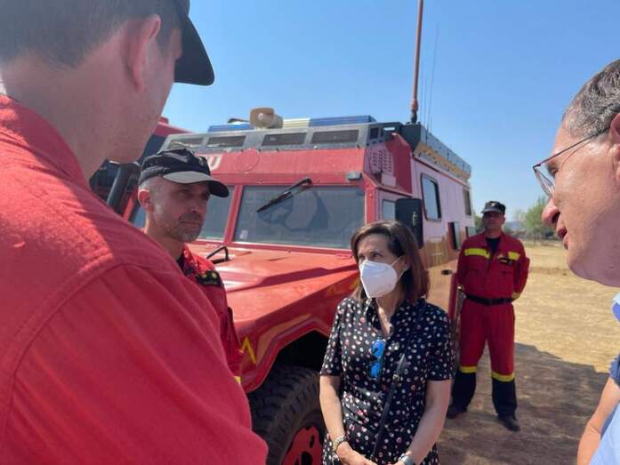 A su llegada, Robles ha sido informada del punto de situación del incendio por el jefe del BIEM V, teniente coronel del Ejército de Tierra José Alberto Barja, y ha realizado una conexión por vídeo con los seis jefes de subgrupos tácticos desplegados actualmente en España para intervenir en las labores contra el fuego.
