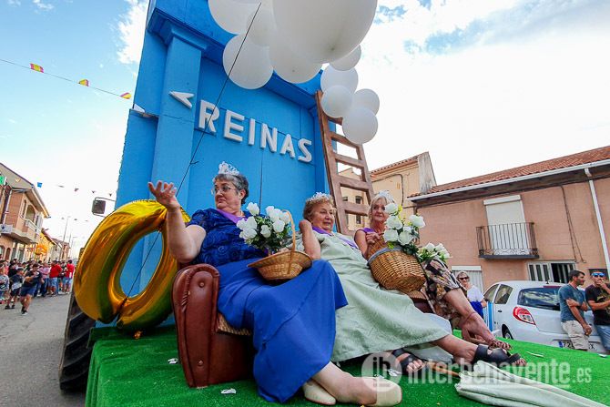 Una Reina y Damas de las Fiestas de la tercera edad era la primera carroza en aparecer en el desfile y se llevaban los primeros aplausos del público expectante, que llenaba las aceras a ambos lados de la carretera.