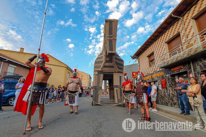 Un gran desfile con mucha imaginación en el que quince grupos entre los que había entre otros, apicultores, vikingos, romanos, payasos, coches de choque, cubanos, mendigos y varias carrozas, con grandes montajes, entre los que había un caballo de Troya, un helicóptero y una nave vikinga