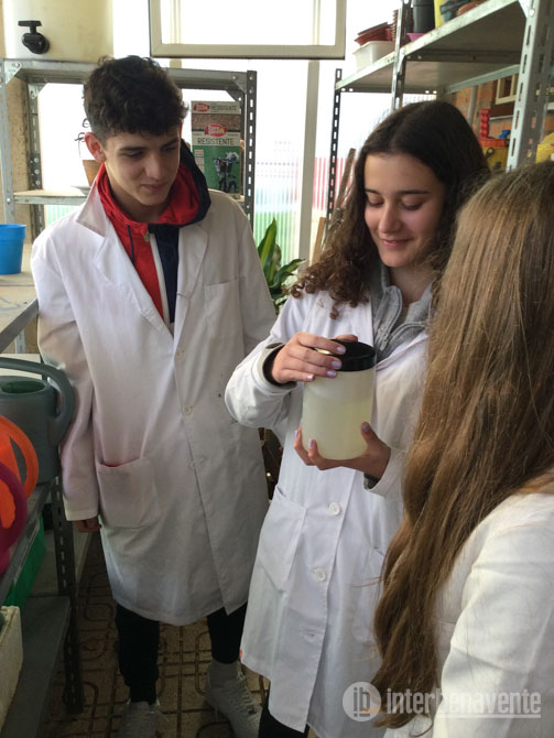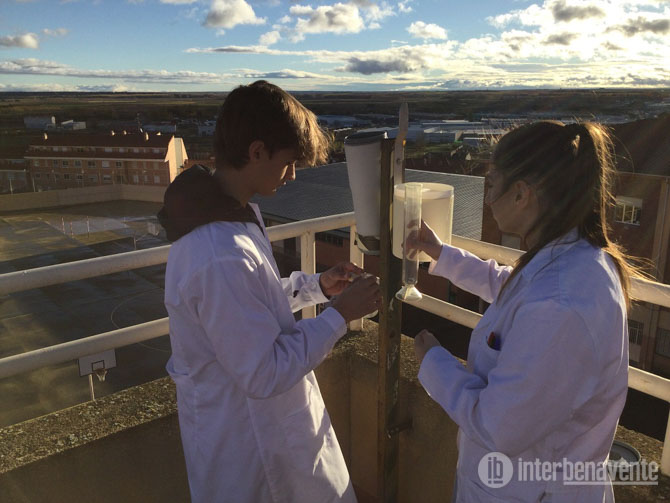En el laboratorio de Biología, los alumnos analizan muestras de agua recogidas por el pluviómetro y el tanque de tormentas, buscando la presencia de esporas y partículas arrastradas por la lluvia, producto de la contaminación del aire.