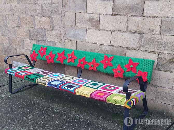 La asociación de mujeres Villa Aurea de esta localidad han decorado las calles y seis plazas del pueblo con elementos realizados con ganchillo