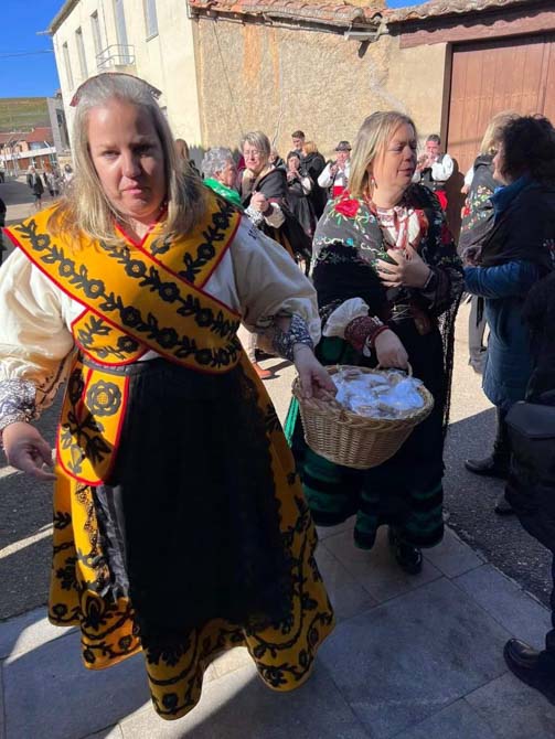 A la salida de la Iglesia las mujeres pudieron disfrutar de los bailes tradicionales amenizados por La Trasga mientras se repartían todo tipo de dulces entre los presentes . La fiesta continuó por las calles del pueblo disfrutando de la música, el baile , los dulces y reponiendo fuerzas con el aperitivo en el Bar Madrid.