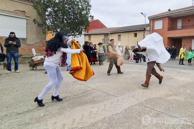 Las embestidas y revolcones del toro se fueron sucediendo durante todo el recorrido y el sonido de los cencerros acompañó a la comitiva carnavalera, trasladando la diversión a todos los rincones