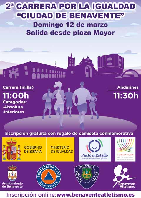 Abiertas las inscriipciones para la II Carrera por la Igualdad que tendrá lugar en Benavente el 12 de marzo, modalidad milla, corredores y andarines.