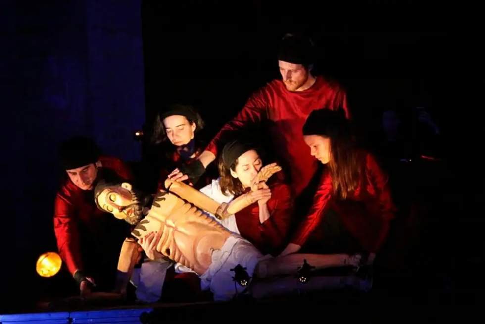 A través de una dramaturgia realizada a partir de textos históricos de diversa procedencia, mediante la investigación e interpretación en directo de piezas musicales que pudieron articular una ceremonia de este tipo, desarrollamos una puesta en escena que combina el trabajo actoral con el teatro de títeres, y que supone un acercamiento a los orígenes del teatro moderno. Una reivindicación por nuestro peculiar Patrimonio vivo, abordada desde una perspectiva absolutamente contemporánea.