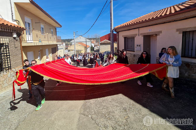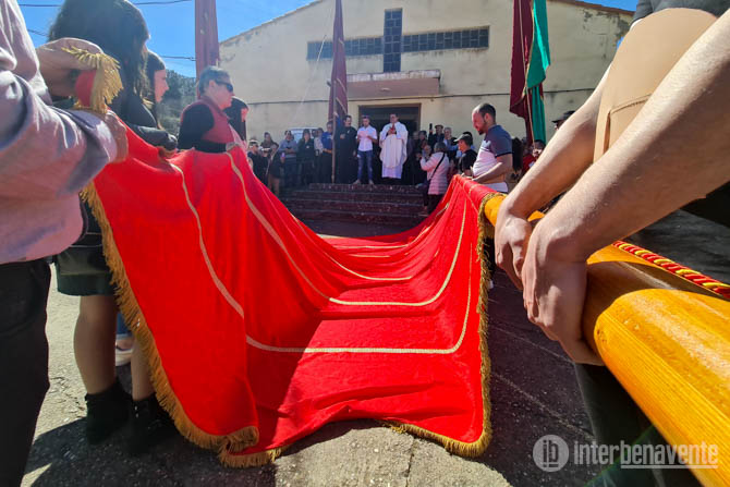 La jornada comenzó con un desfile por el pueblo en el que acompañaron al nuevo pendón otros dos pendones portados por miembros de la asociación de Pendoneros de León, finalizando en la iglesia.