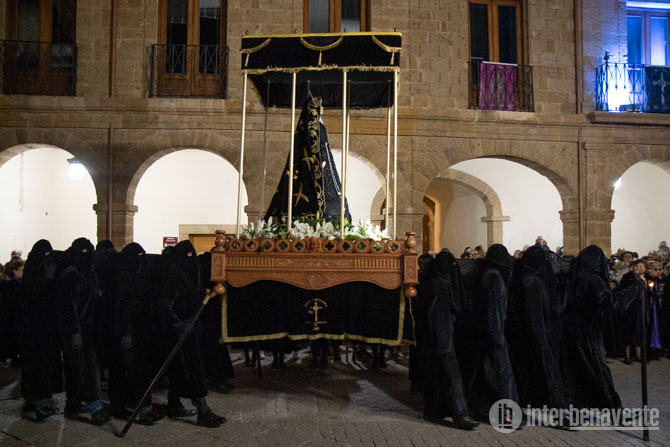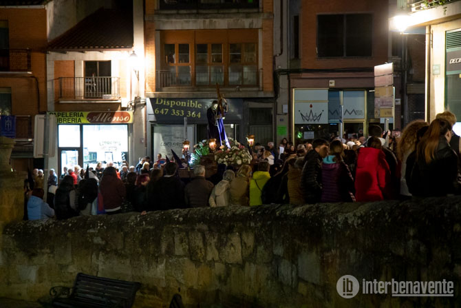 El acto central se celebraba en la Plaza Mayor de Benavente donde la Virgen de la Soledad realiza venias a la Imagen de Jesús con la Cruz, posteriormente la procesión se dividía en dos, la Imagen de Jesús con la Cruz a cuestas y la Imagen de la Soledad irán hacia la Iglesia de San Juan del Mercado; continuando el resto de la Procesión por calle Cortes Leonesas, calle de los Herreros, finalizando en la Iglesia de Santa María la Mayor.