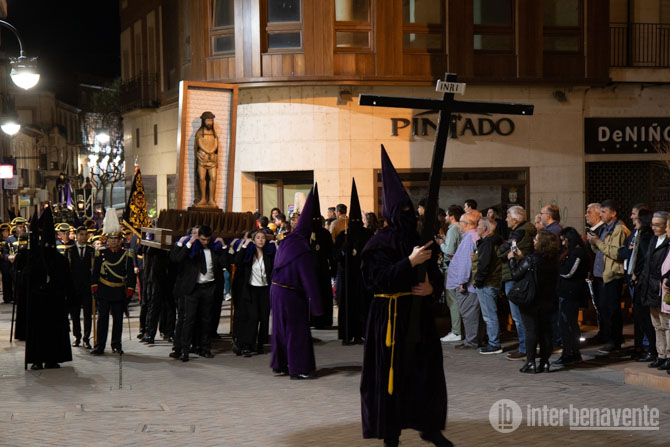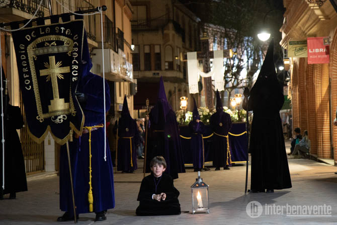 A las 21:00 horas se iniciaba la procesión con los nazarenos que portaban la cruz cumpliendo sus promesas y que precedían a los siete pasos procesionales Paso de La Santa Vera Cruz, Paso de La Oración en el Huerto, Imagen del Ecce Homo escoltado por la Policía Local, Imagen de Jesús Nazareno, Paso de la Desnudez o Redopelo y por último la Imagen de La Virgen de La Soledad, escoltada por la Guardia Civil, cerrando la Procesión representantes del Clero acompañados por los Alcaldes Caballeros de las Cofradías, Autoridades municipales y miembros de la Junta Pro-Semana Santa.