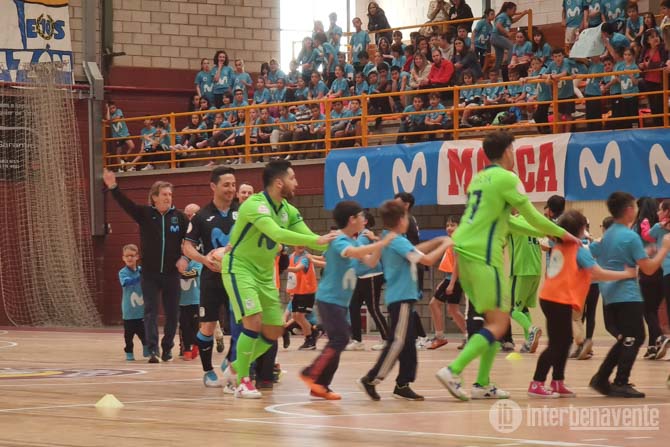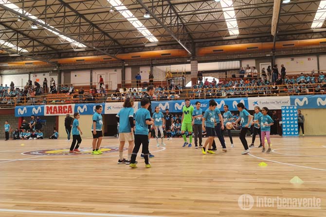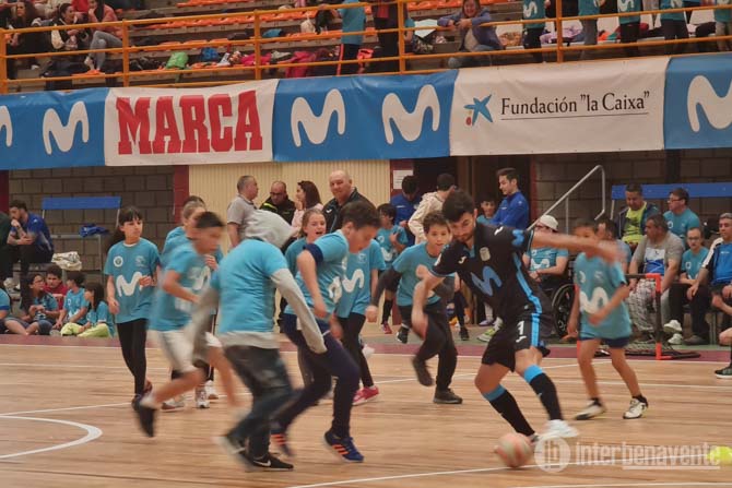 Desde las 11 de la mañana el Pabellón de la Rosaleda albergaba a los alumnos que llegaban de los diferentes centros escolares públicos de la ciudad y a los pequeños jugadores de la cantera del Atlético Benavente, además de usuarios de Asprosub, dispuestos a cumplir uno de sus sueños, conocer a los jugadores del Inter Movistar.