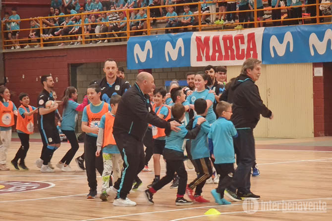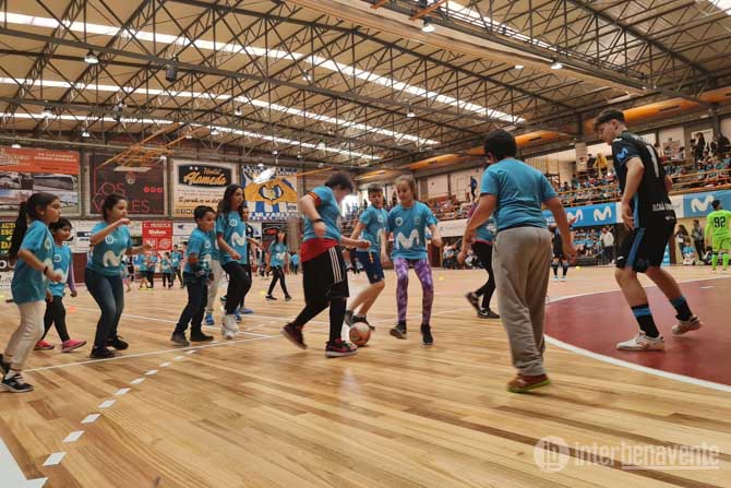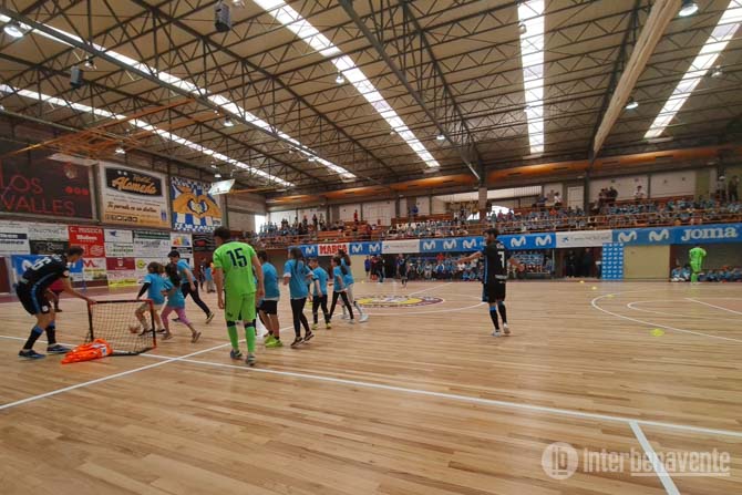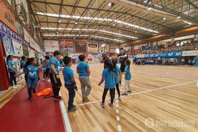 La nueva pista se estrenaba con el primer acto público y lo hacían los jugadores del InterMovistar con los pequeños aficionados, entrenando con ellos por tandas para que todos fueran partícipes y compartieran entrenamiento y tácticas de jugadas con los jugadores de primera división.