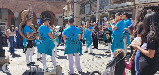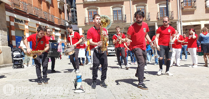 La Plaza Mayor era el punto de encuentro de la concentración de charangas que se celebra cada sábado dentro de las fiestas patronales de la Veguilla. En total han sido cuatro las charangas participantes, el Tropezón, los Chumachos, Pasodoble y Sin Control.