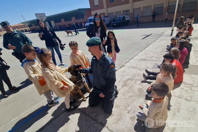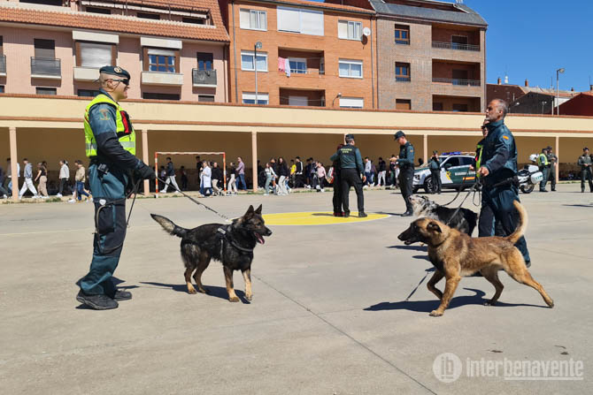 Alrededor de una veintena de efectivos de las comandancias de Zamora, Benavente y la Unidad Aérea de León han participado en la mañana de hoy en una exhibición que ha tenido lugar en el patio del colegio benaventano Virgen de la Vega
