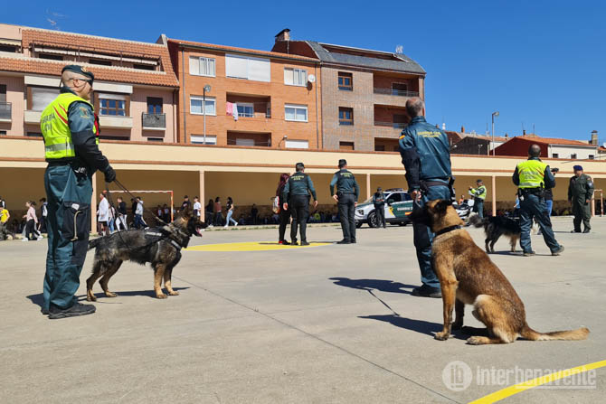 En la exhibición de hoy ha participado la unidad cinológica de la Guardia Civil de Zamora, con varios perros adiestrados que demostraron como son capaces de encontrar sustancias estupefacientes y personas. También los alumnos pudieron ver en acción un dron y los ordenadores desde donde realizan su control con cámaras de temperatura y otros accesorios.