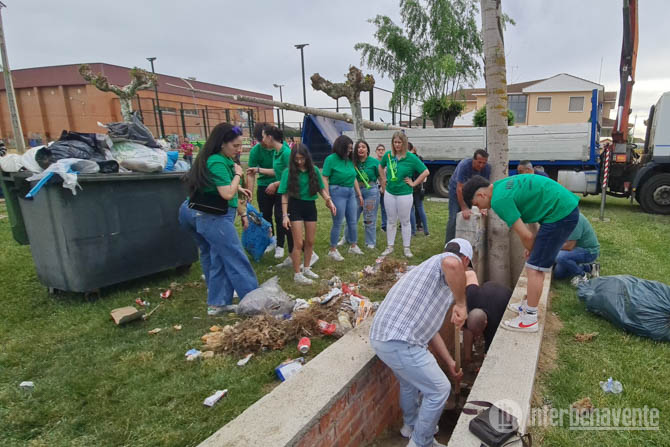 La música de la charanga y el buen ambiente suplieron esos momentos atareados para los quintos y los voluntarios que se acercaron para ayudarles en esa faena y la diversión se impuso en el evento, que finalizó como es costumbre con el reparto para todos los asistenes de escabeche, pan y sangría.