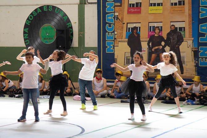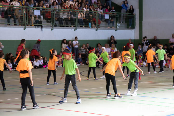 El día de fiesta comenzó con la celebración de la eucaristía y seguidamente en el pabellón de deportes tuvieron lugar las actuaciones de todos los grupos desde primero de infantil hasta los alumnos de la ESO.