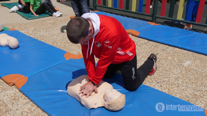 El programa se ha dividido en dos partes , en la primera José Manuel presentó a los pequeños distintas soluciones para los accidentes más comunes en el ámbito infantil como caídas de bicicleta, incendios en la casa familiar, quemaduras o picaduras . En la segunda parte, que ha tenido lugar en la zona exterior del colegio, se han realizado por edades prácticas de RCP( Reanimación Cardio Pulmonar ) estrenando para ello el nuevo material adquirido , también practicaron PLS ( Posición lateral de seguridad) y los mayores presentes ( personal docente, de servicios y madres ) pudieron ejercitar, siguiendo las orientaciones de José Manuel, distintas prácticas de OVACE( Obstrucción vía aérea cuerpo extraño).