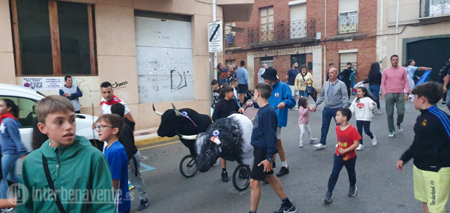 Los carretones de Gente del Toro han salido de nuevo a la calle para protagonizar el primer chiquiencierro de la Semana Grande del Toro Enmaromado, una actividad más que ha conseguido solventar la lluvia prevista y que ha congregado a un numeroso grupo de pequeños dispuestos a disfrutar de unos encierros a su medida.