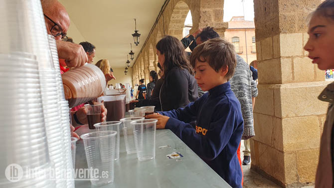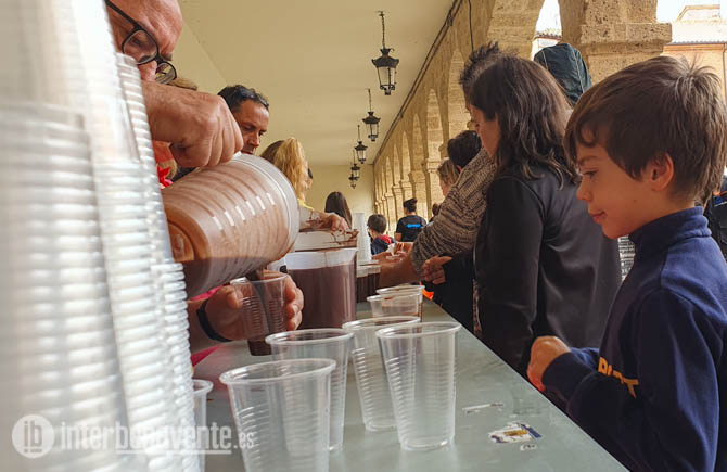 Tras la carrera del torito del alba Berreón llegaba la tradicional chocolatada que debido a la lluvia cambiaba su ubicación de los Paseos de la Mota a los soportales de la Plaza Mayor.