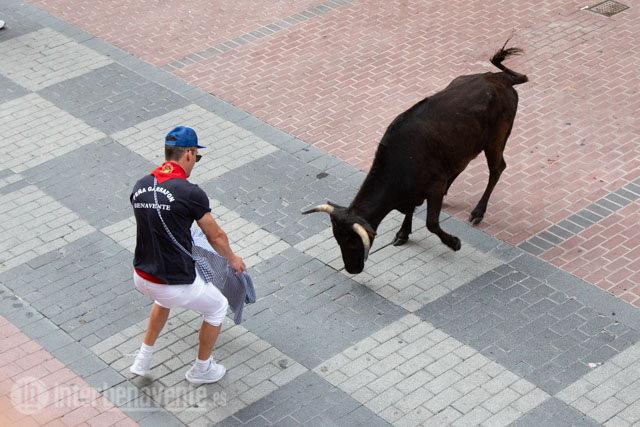 Tres vaquillas que estuvieron durante el recorrido vallado alrededor de 20 minutos, fue en un momento del espectáculo taurino cuando uno de los participantes intentó saltar a una de las vaquillas recibiendo un toque de la res y cayendo golpeándose la cabeza. Inmediatamente fue trasladado al doble vallado para ser atendido por los servicios sanitarios, que finalmente fue derivado al Hospital Comarca para mejor valoración, aunque su estado no presentaba gravedad.