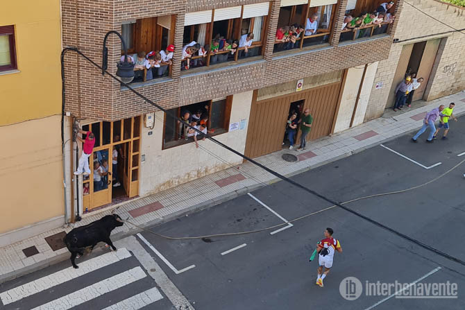 Fue en el segundo tramo de la carrera, en la Calle de Santa Clara cuando se produjo la cornada a un benaventano en la zona del cuello y que ha tenido que ser trasladado a León.