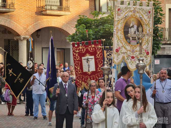 La procesión se inició una vez finalizada la misa y transcurrió, como es tradición, por la calle de la Rúa hasta la Plaza Mayor, regresando por la Calle de los Herreros, para finalizar regresando por la Plaza de la Madera de nuevo a la iglesia, seguida de numerosos fieles que participaron en la misma. Las campanas de Santa María la Mayor sonaron a la llegada de la procesión aportando a la misma una gran solemnidad.