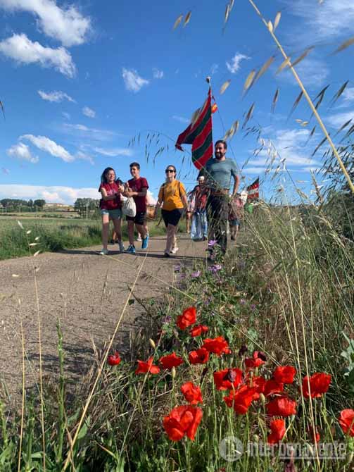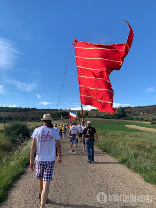El viento, que soplaba con fuerza en algunos tramos, añadió un espectáculo visual a la procesión de enseñas multicolores, llevadas con maestría por los expertos pendoneros, que avanzaban con paso decidido por los campos engalanados con un espectacular verdor tras las últimas lluvias primaverales.