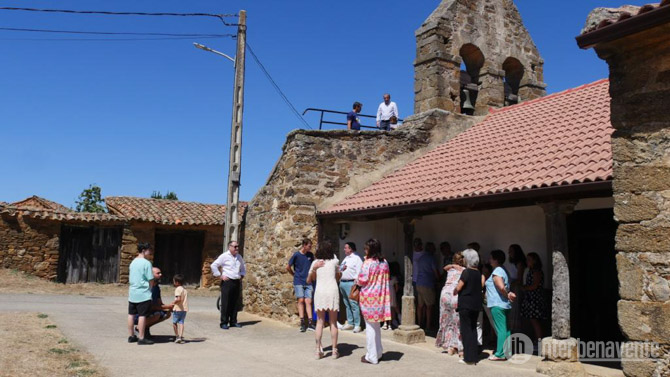 Rodeada de encinas calcinadas y con el embalse de Agavanzal como playa, Villar de Farfón se resiste a desaparecer, y fruto de ello es la celebración de su día de San Blas este 5 de agosto. "En el pueblo solo viven dos personas durante el año y, si no celebramos nuestra festividad de San Blas, ahora desaparecería", nos dice Teresa, que, como el resto de vecinos del pueblo, solo viene en verano.