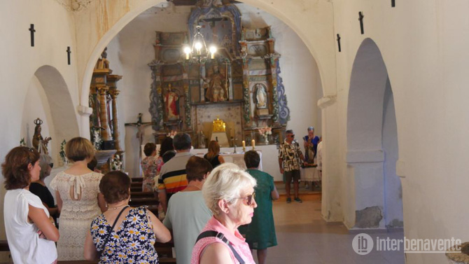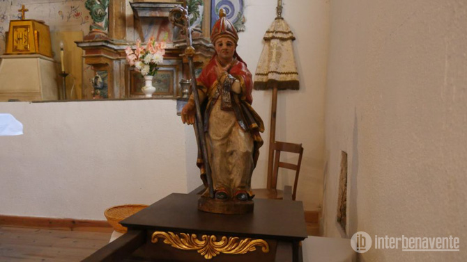 Ayer sábado, 5 de agosto, más de cincuenta personas del pueblo llenaron la pequeña iglesia de Villar para honrar a este Santo cuya festividad oficial se celebra el 3 de febrero. La pequeña imagen del santo protector de las enfermedades respiratorias hoy había sido engalanada para la ocasión y esperaba en sus andas volver a pasearse por las calles del pueblo. Antes, el párroco del pueblo, Raúl Vega, ofició la misa durante la cual tuvimos tiempo de admirar los tres pequeños retablos que decoran la iglesia, así como algunos confesionarios de madera policromada difíciles de ver en nuestras iglesias rurales. También, en un rincón, hemos podido admirar una imponente pila bautismal cuya antigüedad no hemos podido averiguar, pero bien podría ser de época románica.