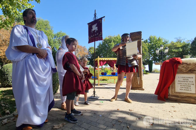 Tras la inauguración de la jornada comenzaban los actos lúdicos, con talleres de mosaicos y una explicación sobre cómo se formaban los ejércitos y las partes de un uniforme romano, así como las costumbres de esta sociedad bélica que llegó a extenderse por toda Europa.