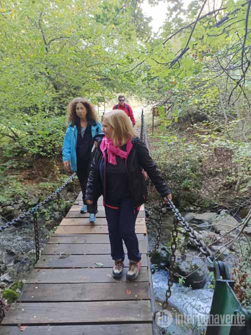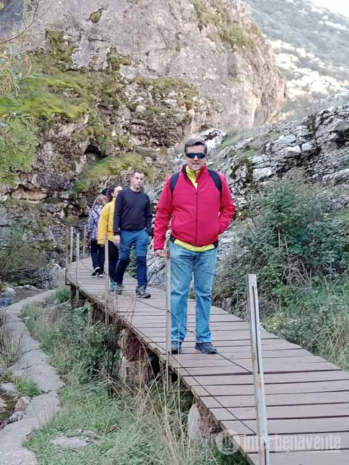 La ruta los llevó al desafiante tramo de las Hoces del Villar, un estrecho desfiladero que conectaba Ciñera con el pueblo de Villar del Puerto en tiempos mineros. Aquí, una pasarela de madera y acero les permitió disfrutar de las impresionantes vistas y llegar a una serie de cascadas y piscinas naturales conocidas como 'Marmitas de Gigante'. Estas se forman debido a la caída del agua sobre la roca y la disolución química del lecho de caliza.