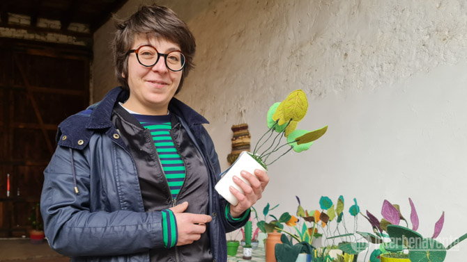 Esta benaventana ha conjugado sus conocimientos como Licenciada en Arte textil y sus estudios de floristería para ofrecer una original exposición de plantas elaboradas en distintos materiales textiles