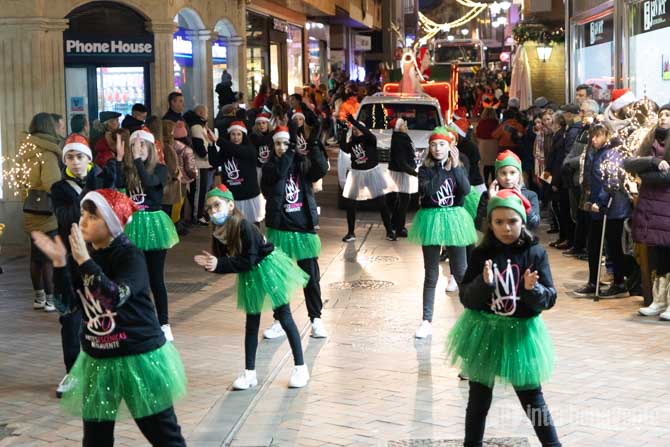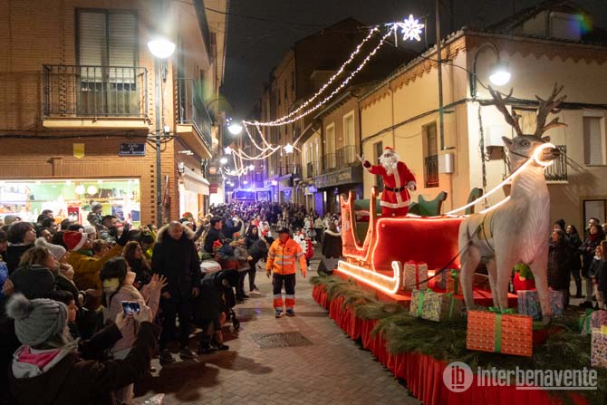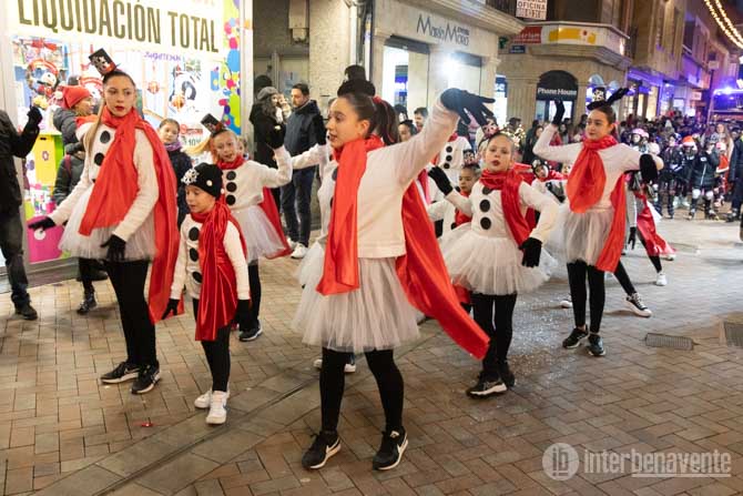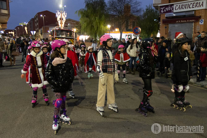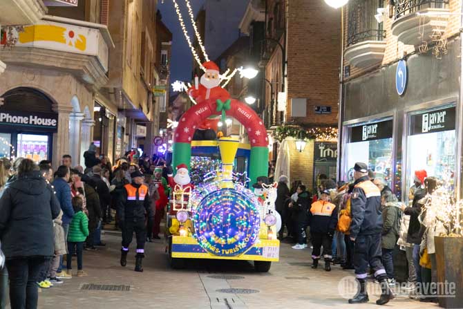 Abría la cabalgata un luminoso tren musical, seguido de un grupo de alumnos de la Escuela de Baile Mari Jose, otro de la Escuela Rítmica Benavente y de la Escuela de Patinaje de Benavente, que acompañaban a la carroza de Papá Noel y su reno. Cerraba la cabalgata el camión de los bomberos.