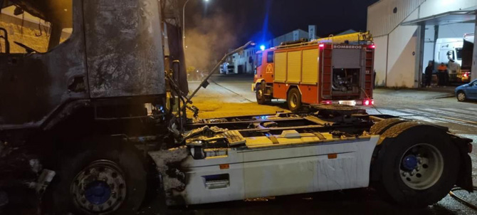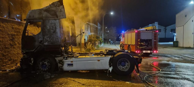 El alertante comunicó el incendio de un vehículo, que resultó ser la cabeza tractora de uno de los camiones de un conocido transportista de la comarca.