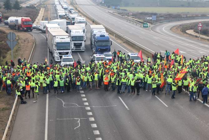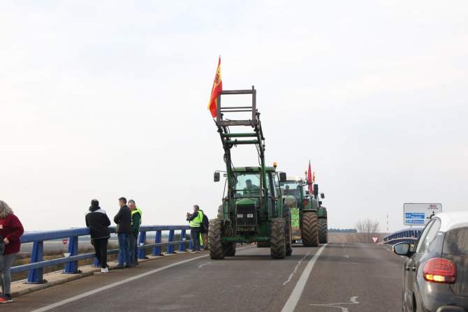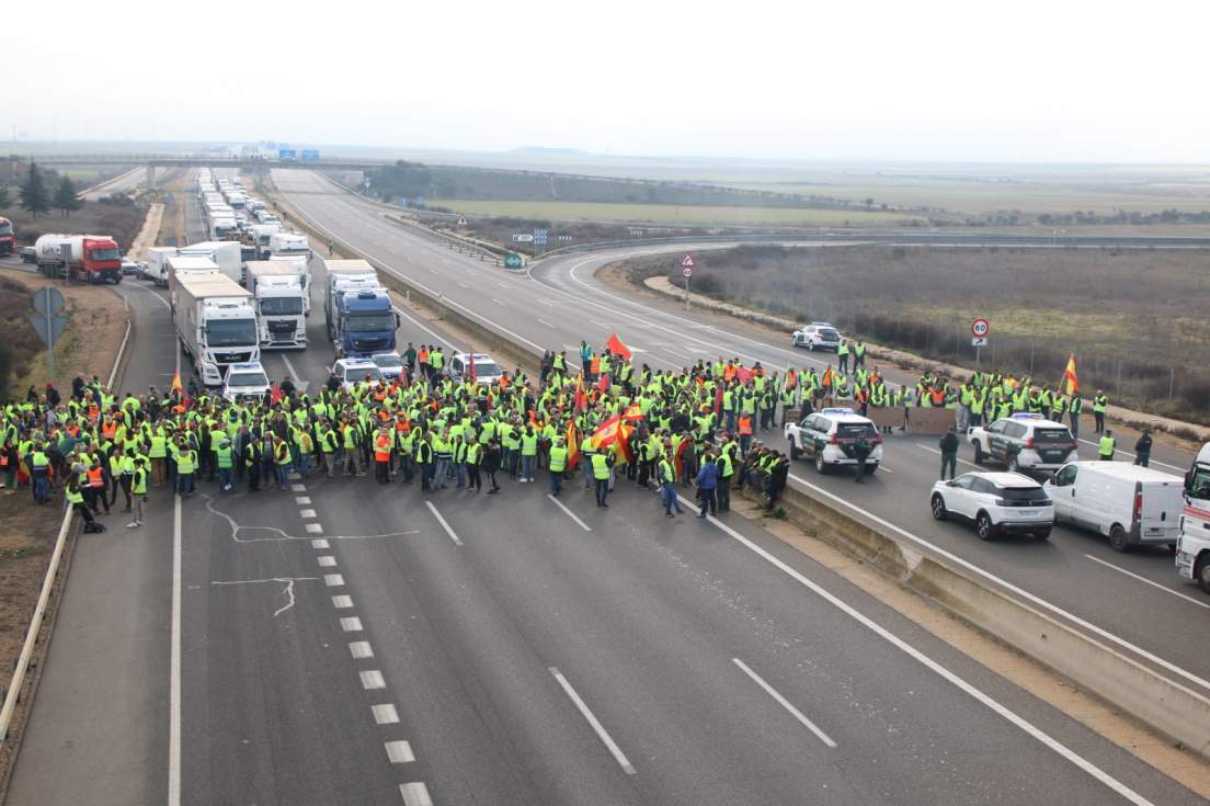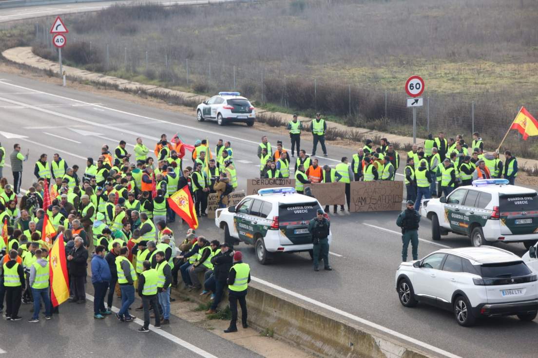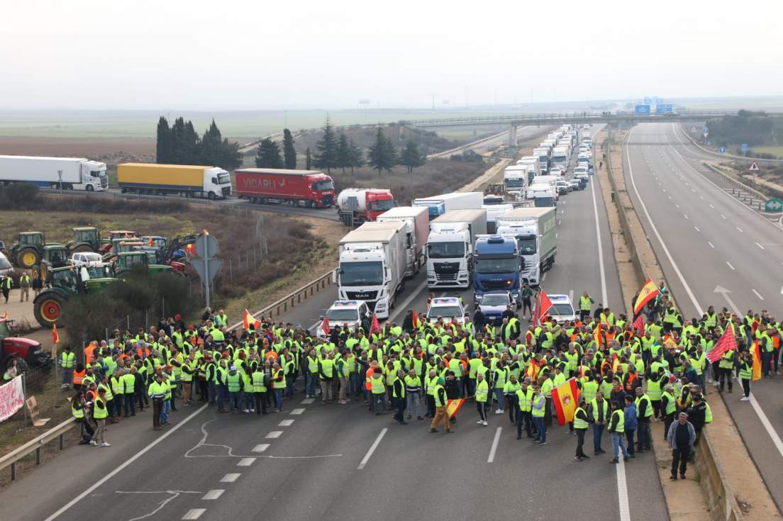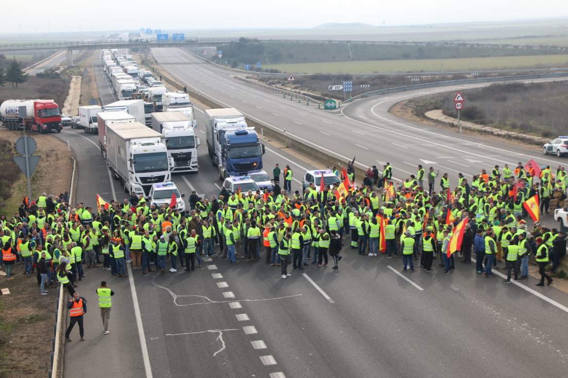 Los agricultores de la comarca de Benavente vuelven a cortar el tráfico durante varios minutos en la A6 a la altura de Castrogonzalo dentro de la jornada de protesta convocada, en esta ocasión, por las organizaciones agrarias como Asaja, COAG y UPA en todo el territorio nacional.