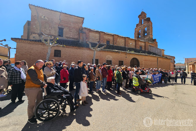 Alrededor de 200 vecinos se congregaron hoy a la una menos cuarto de la tarde frente a la iglesia de San Pedro en Villalpando. Con una pancarta y leyendo un manifiesto, exigieron medidas urgentes para preservar este emblemático templo, que enfrenta un deterioro alarmante, para lo que han emprendido una campaña de micromecenazgo