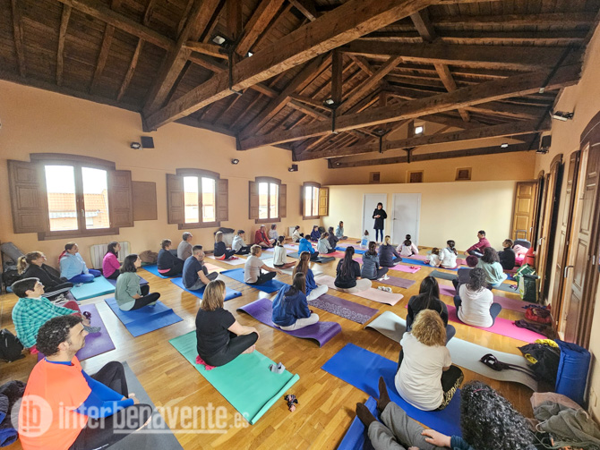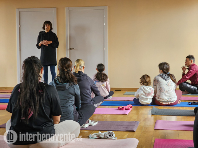 Aunque el mal tiempo obligaba a trasladar la actividad de yoga del patio de los ábsides de San Juan del Mercado al interior de la Casa de Cultura la Encomienda, eso no restó los ánimos a los más de 40 participantes que acudieron a la actividad organizada por la Concejalía de Deportes con motivo de la celebración del Día de la Madre.