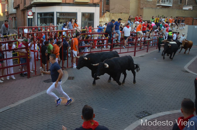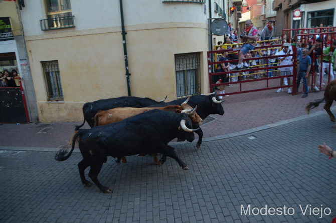 Tras una tarde de toros la nota final la ponía el encierro de los novillos, los mismos que participaron en el concurso de Cortes, los astados hicieron dos carreras una de ida y otra de vuelta de manera rápida acompañados de cuatro cabestros.