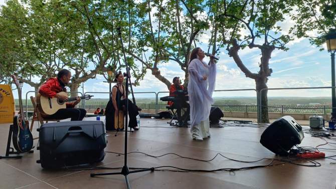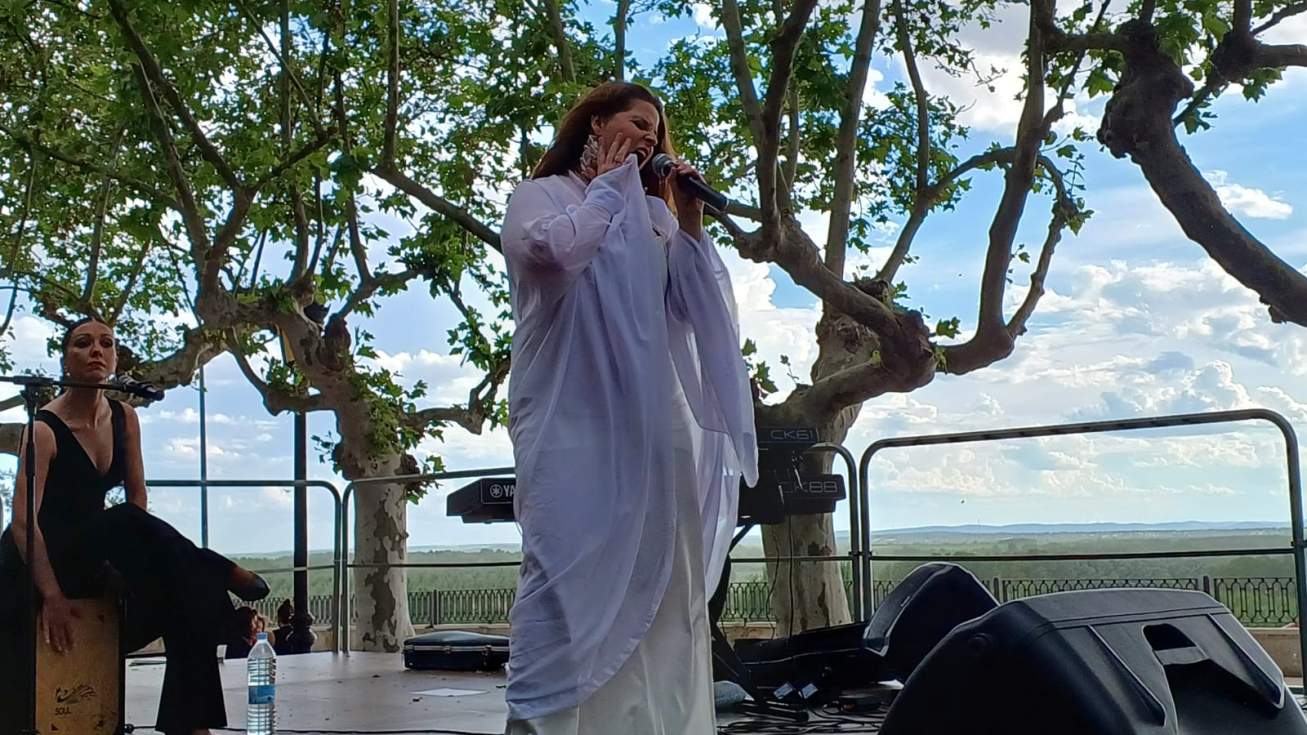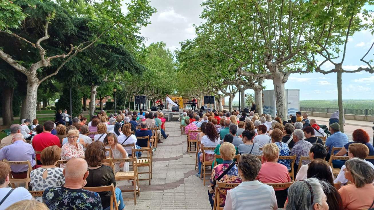 “Noches de Rocío Jurado” así se llamaba el tributo en femenino programado por la Concejalía de Fiestas en los Paseos de la Mota y que comenzaba a las 19:00 horas. El público respondía masivamente llenando todos los espacios para poder disfrutar de esta copla.