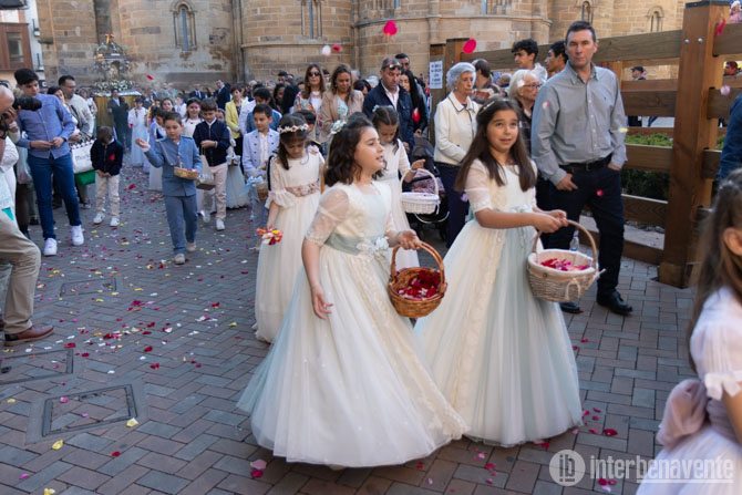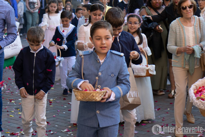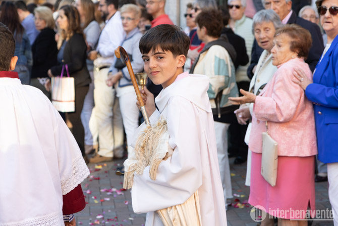 En la misa y procesión, a la que asistió la alcaldesa Beatriz Asensio y varios miembros del equipo de Gobierno, han participado los niños de comunión de las distintas parroquias de la ciudad y representantes de las disintas cofradías con sus estandartes. La procesión ha estado acompañada con la música de la Charanga Los Chumachos y tambén ha participado el grupo de Paloteo del IES los Sauces de Benavente, que han hecho tres exhibiciones, una a la salida en la Plaza de Santa María, otra en la Plaza Mayor y otra antes de entrar la procesión de nuevo en la igblesia.