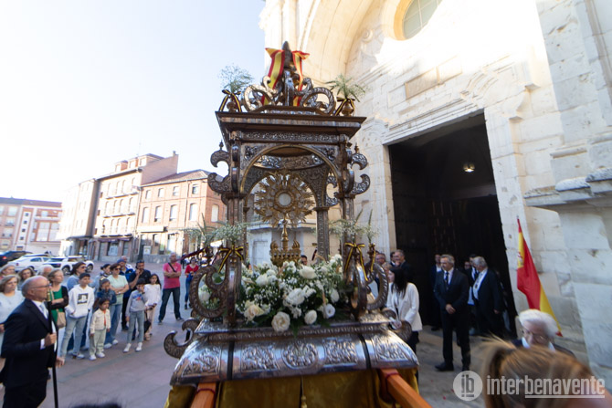 Para ello se han recuperado para la procesión de este día las andas de plata, sufragadas por el Concejo de la Villa de Benavente y concebidas para tal fin y ejecutadas por el orfebre Juan de Figueroa en 1694, que en la actualidad albergan la imagen de la Virgen de la Vega, patrona de la ciudad, las cuales se adaptaron en 1835 para procesionar la imagen mariana. Las andas han salido un adorno floral de ramilletes de espigas como símbolo de la eucaristía y engalanados con cinta de la enseña de la ciudad.