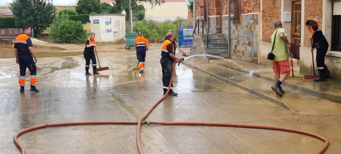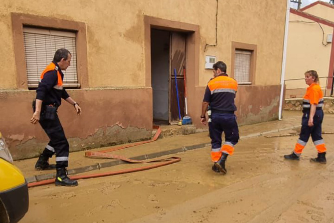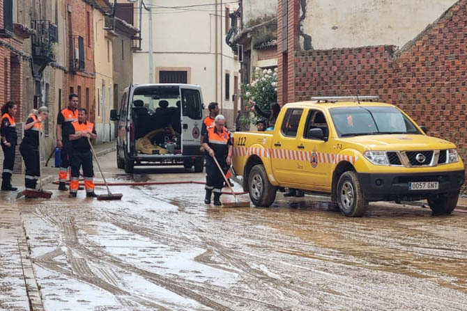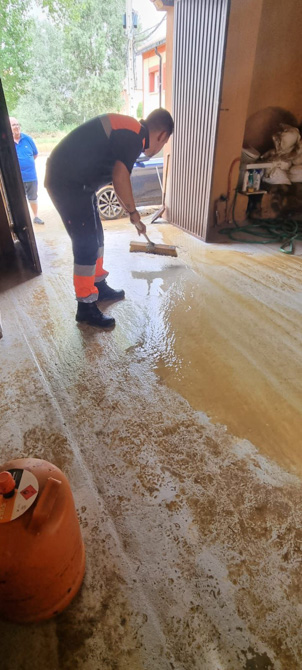 Voluntarios de Protección Civil de Benavente tuvieron que intervenir para auxiliar a los vecinos y colaborar en las tareas de desalojo del agua en algunos domicilios e instalaciones ganaderas
