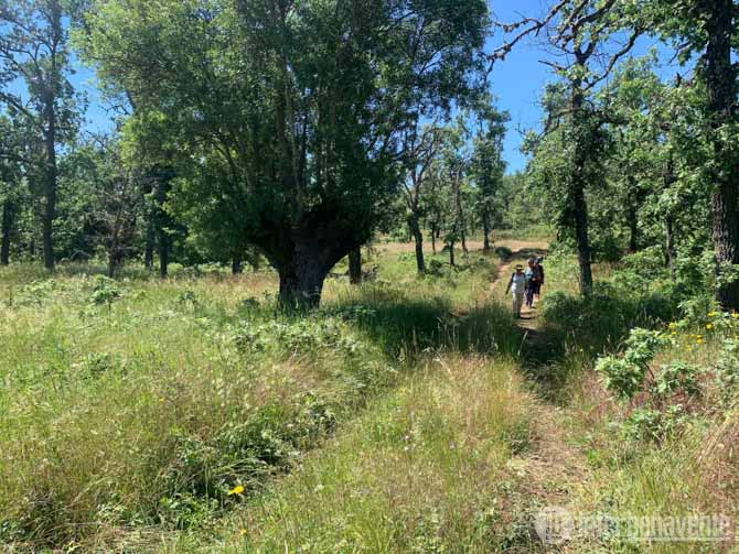 Hay pocos entornos naturales donde se encuentren tres tipos de bosques perfectamente diferenciados, como sucede en este emblemático bosque de El Real. En las orillas del arroyo del Regato podemos admirar los centenarios ejemplares de fresnos y todo el sotobosque del bosque de ribera. Muchos de estos fresnos están en claro retroceso y muchos han perecido en los últimos años a causa de la sequía, que este año han esquivado, permitiendo que volvamos a ver sus copas frondosas características de una primavera húmeda que aún permite que el arroyo del Regato mantenga un buen nivel de agua.