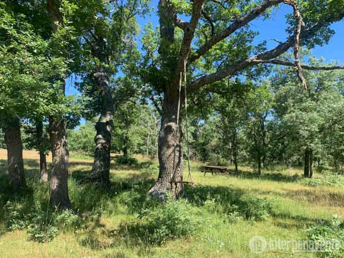 En las zonas húmedas alejadas del arroyo principal prosperan los robles, formando pequeños bosques con gran variedad de herbáceas aprovechadas por una ganadería vacuna extensiva.